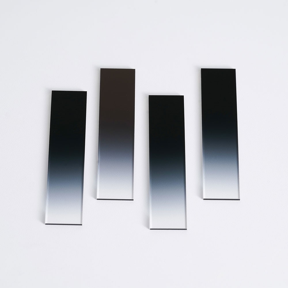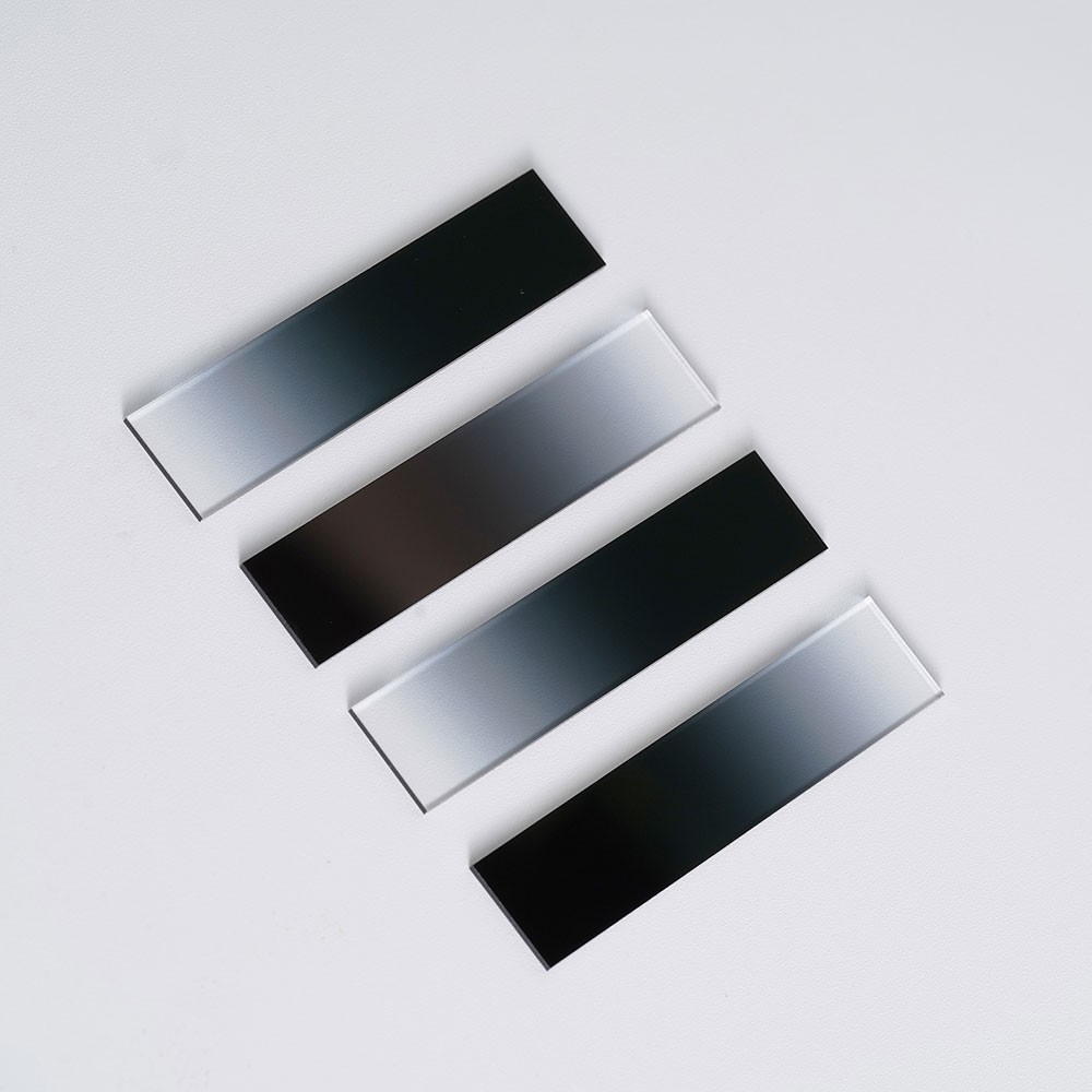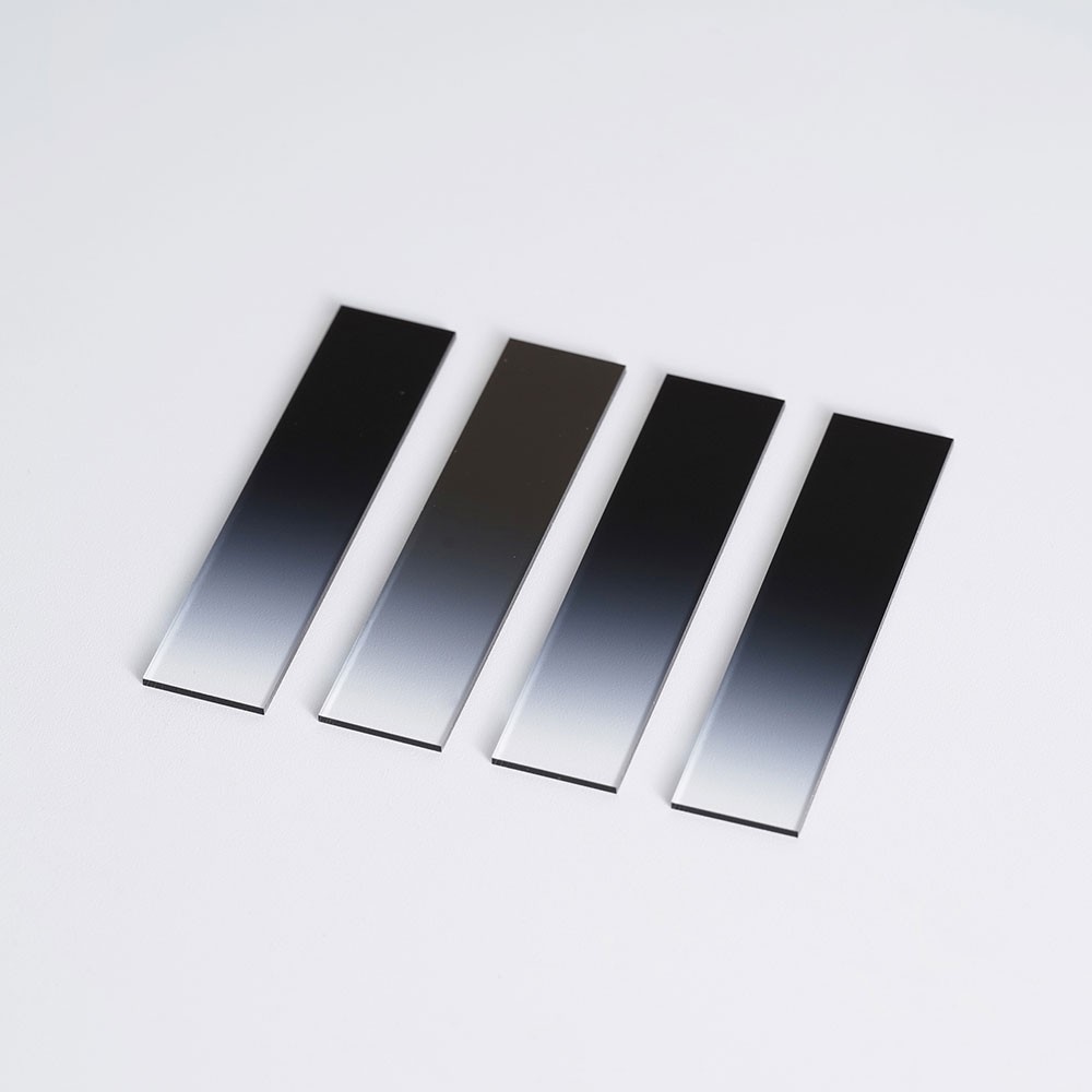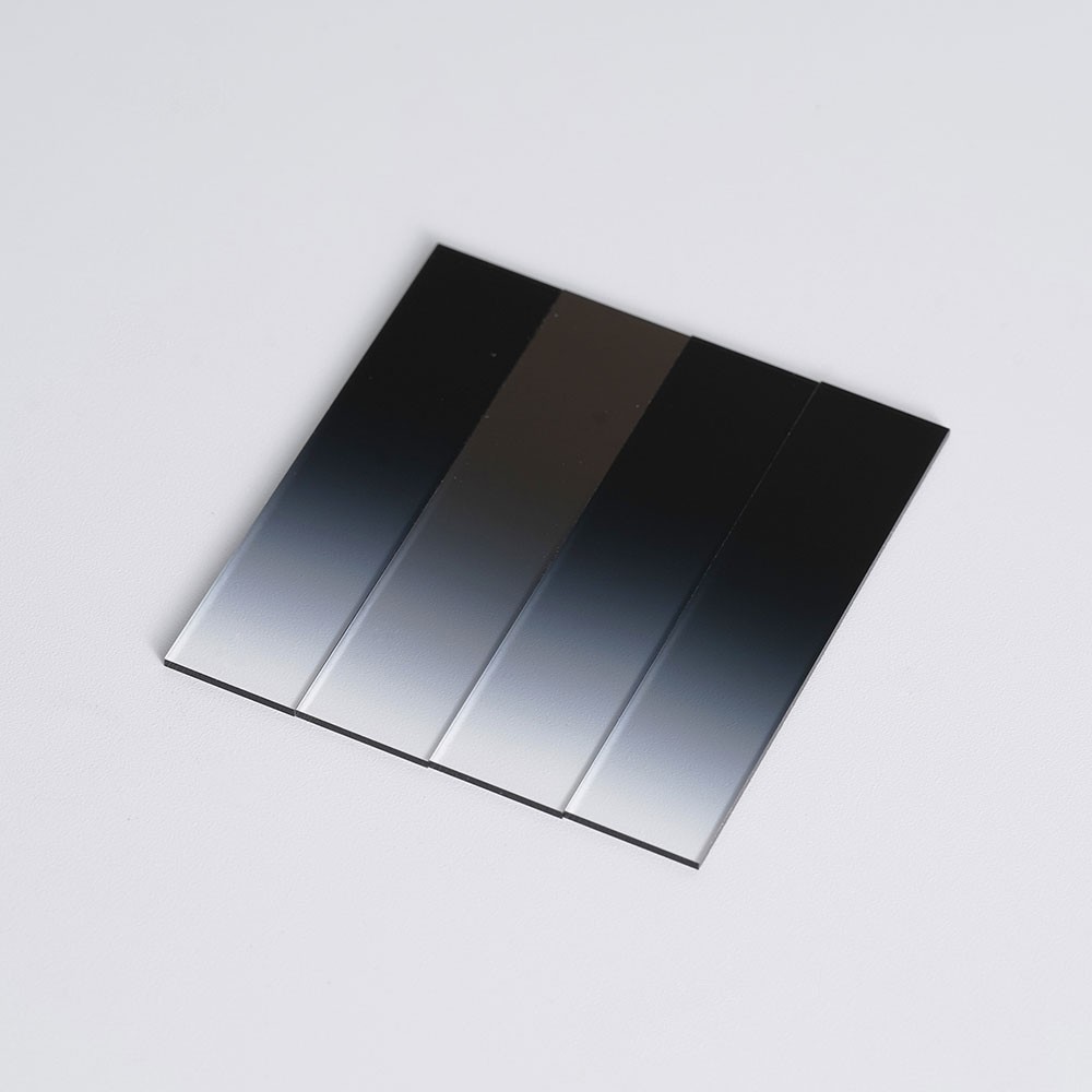 條形漸變中性密度濾光片作為一款具備獨(dú)特條形漸變結(jié)構(gòu)的光學(xué)元件,作為中性密度濾光片家族的創(chuàng)新成員,它提供了光密度沿單一方向(如水平、垂直)線性變化,其核心特色在于特定條形方向上透光率呈現(xiàn)線性漸變分布。從濾光片的一端到另一端,透光率按照預(yù)設(shè)的線性規(guī)律逐漸變化,這種設(shè)計(jì)為光學(xué)系統(tǒng)提供了更靈活、精準(zhǔn)的光強(qiáng)調(diào)控方案。