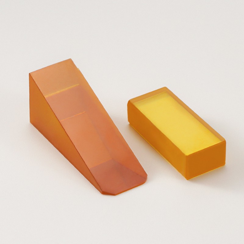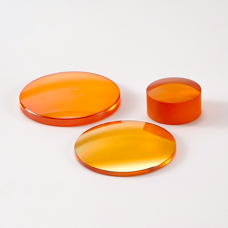 硒化鋅材料是一種黃色透明的多晶材料, 結(jié)晶顆粒大小約為70μm, 透光范圍0.5-15μm。由化學(xué)氣相沉積(CVD)方法合成的基本不存在雜質(zhì)吸收, 散射損失極低。由于對(duì)10.6μm波長(zhǎng)光的吸收很小, 因此成為制作高功率CO2激光器系統(tǒng)中光學(xué)器件的材料。 此外在其整個(gè)透光波段內(nèi), 也是在不同光學(xué)系統(tǒng)中所普遍使用的材料。硒化鋅材料對(duì)熱沖擊具有很高的承受能力, 使它成為高功率CO2激光器系統(tǒng)中的光學(xué)材料。硬度只是多光譜級(jí)ZnS的2/3, 材質(zhì)較軟易產(chǎn)生劃痕, 而且材料折射率較大, 所以需要在其表面鍍制高硬度減反射膜來加以保護(hù)并獲得較高的透過率。在其常用光譜范圍內(nèi), 散射很低。在用做高功率激光器件時(shí), 需要嚴(yán)格控制材料的體吸收和內(nèi)部結(jié)構(gòu)缺陷, 并采用最小破壞程度的拋光技術(shù)和光學(xué)質(zhì)量的鍍膜工藝。