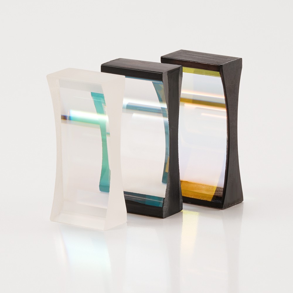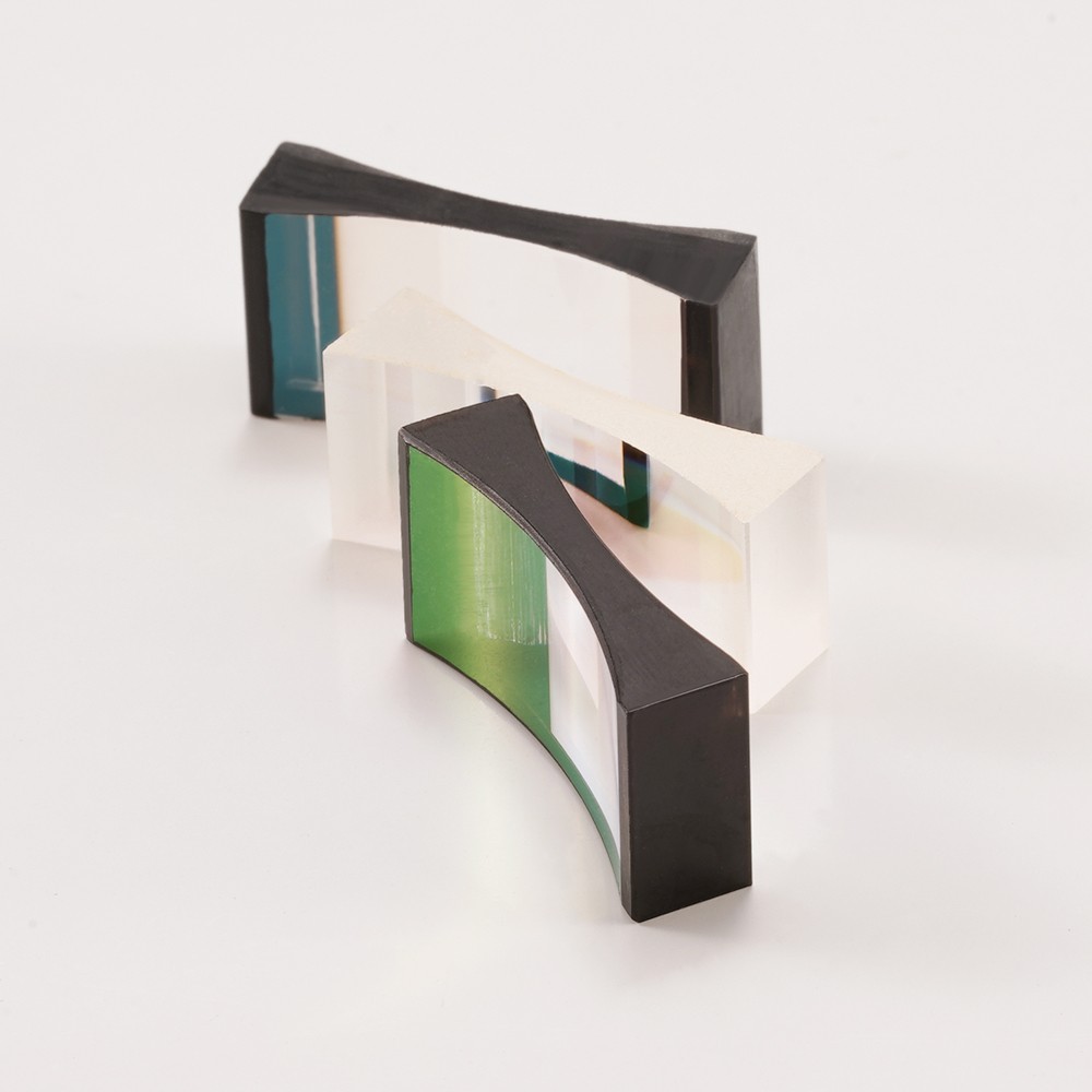 柱面鏡分為平凸柱面透鏡、平凹柱面透鏡、雙凸柱面透鏡、雙凹柱面透鏡、彎月柱面鏡、柱交柱面鏡和異形類柱面透鏡。具有將點光源變?yōu)榫€形光源的作用。雙凹柱面鏡主要應用于改變成像尺寸大小的設計要求。